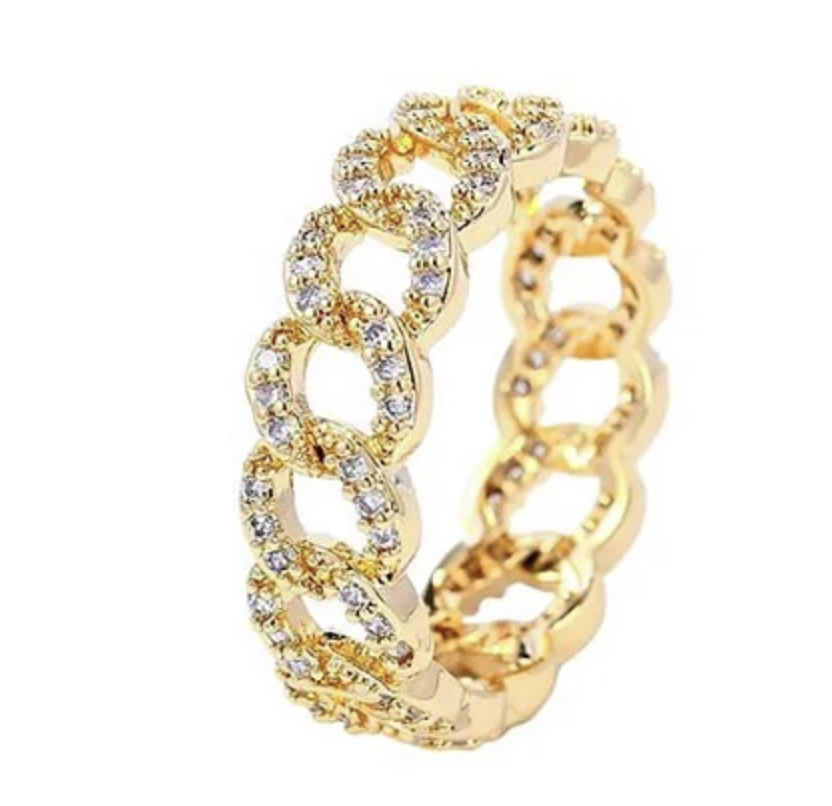 Anel cravejado com micro zircônia cristais de qualidade 5AAAAA Premium, banho Ouro 18k