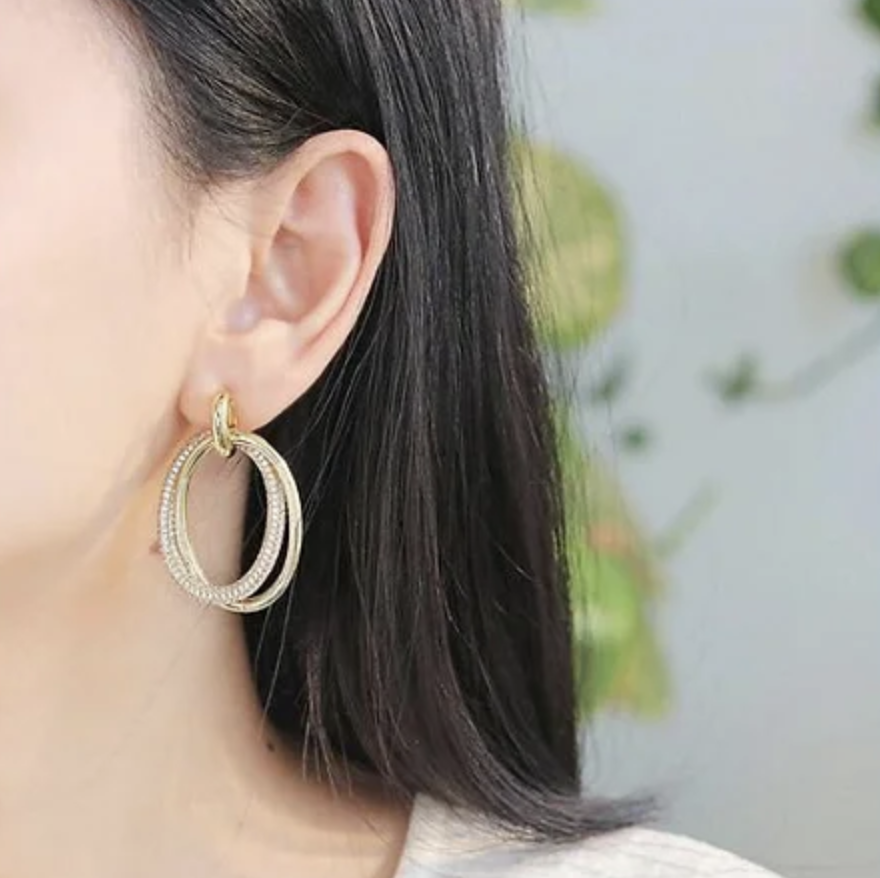 Brinco de latão, cravejado com micro zircônias cristais de alta qualidade na classificação 5A da cor cristal.