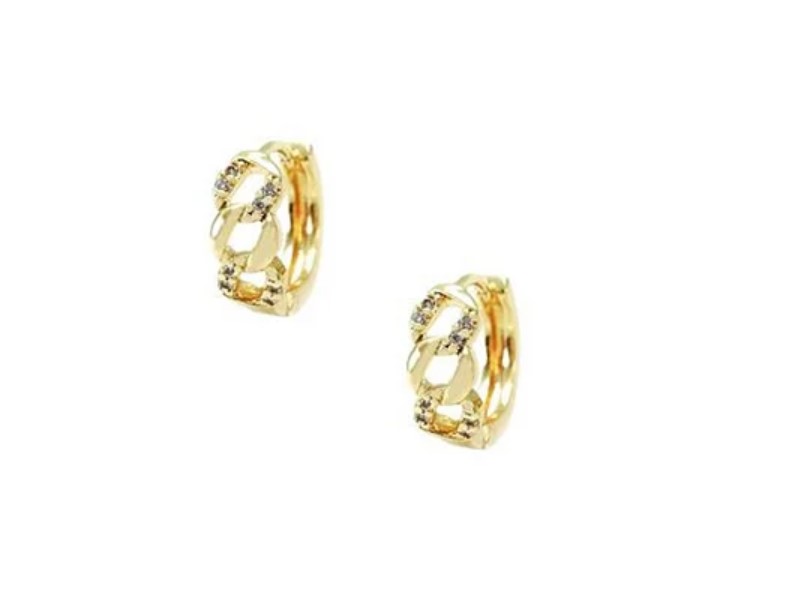 Brinco argolinha elos frontal banhado a ouro 18k/cristal