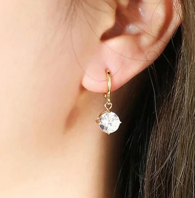 Brinco em latão de alta fusão cravejado manualmente com zircônia 5A Premium, banho Ouro 18k
