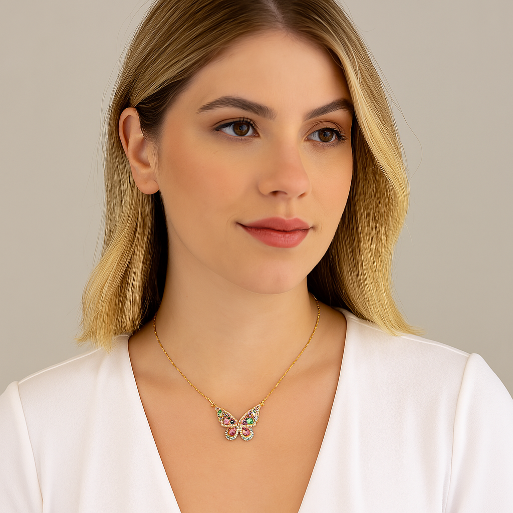 Colar cravejado com micro zircônia cristais de qualidade 5AAAAA Premium, banho Ouro 18k/cristal+mix de cores.