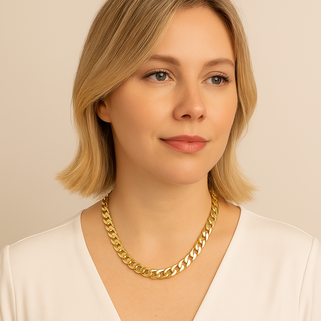 Colar em latão de alta fusão polido manualmente, banho Ouro 18k