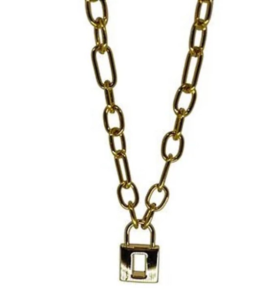 Colar feminino Cadeado corrente banhado a ouro 18k .